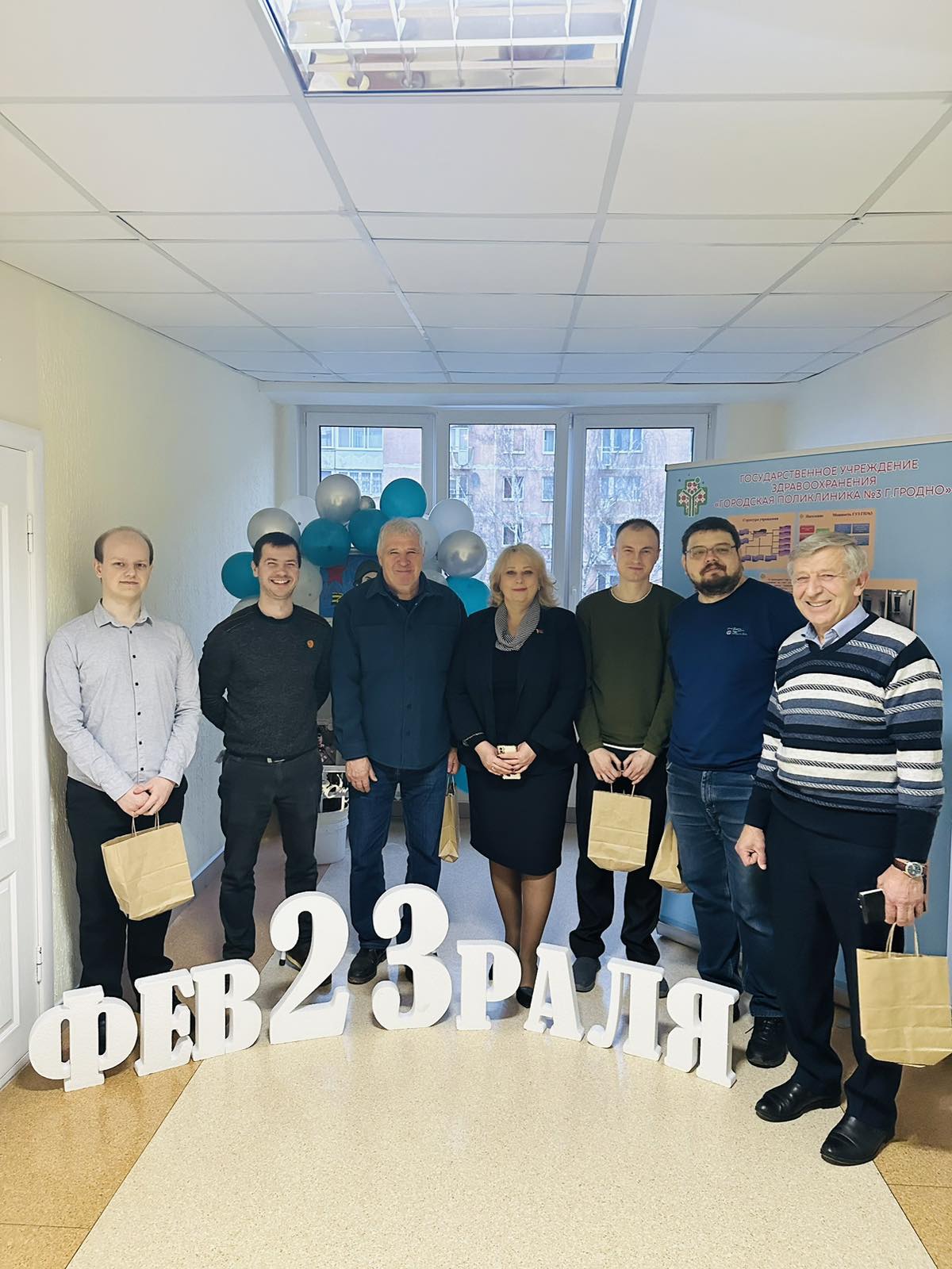 Сегодня,23 февраля, администрация поликлиники поздравила наших мужчин с праздником-Днем защитников Отечества и Вооруженных Сил Республики Беларусь.