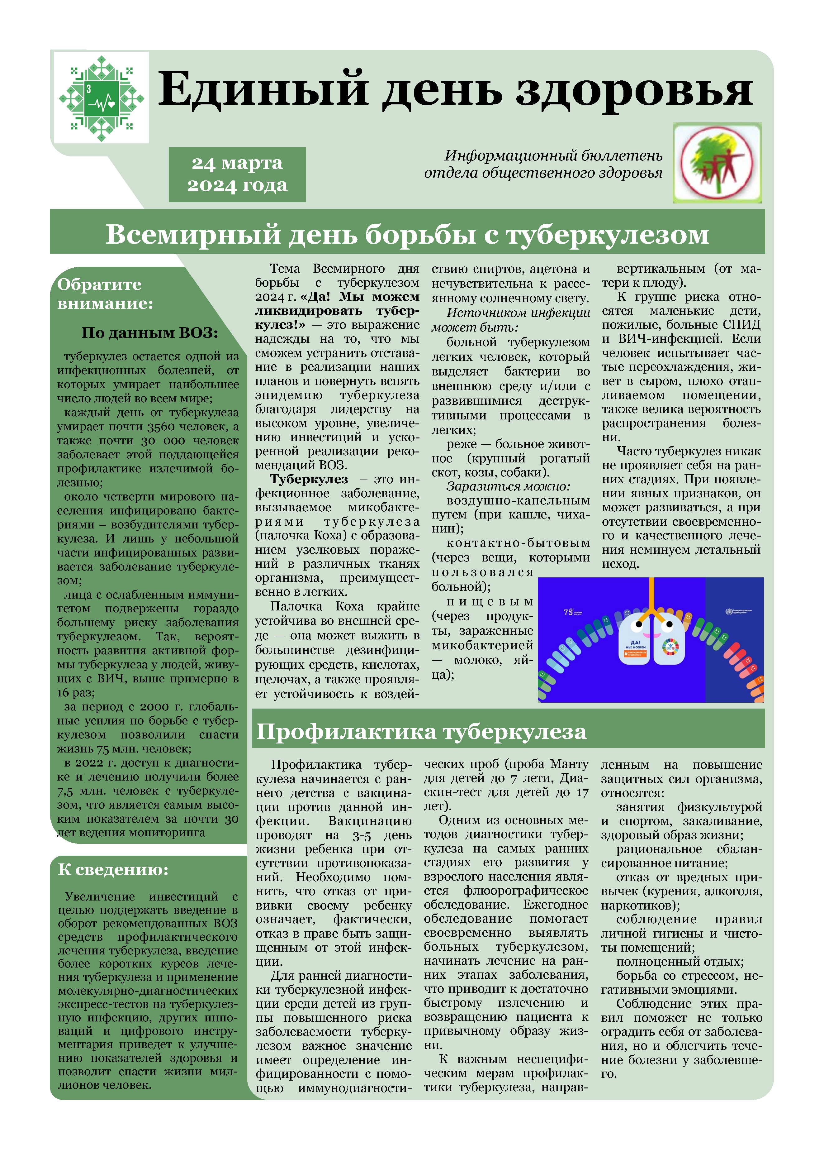 Единый день здоровья. Всемирный день борьбы с туберкулезом.