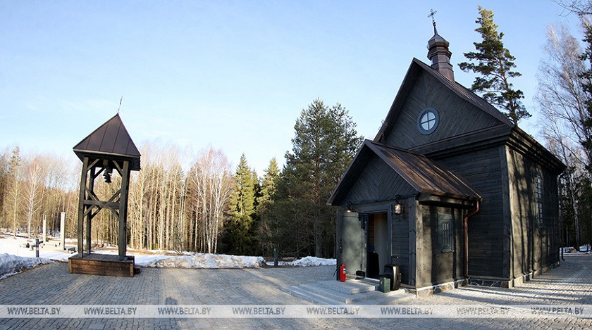Президент Беларуси в памятную годовщину хатынской трагедии посетил церковь, которая была восстановлена по образцу ранее здесь существовавшей и уничтоженной во время Великой Отечественной войны.