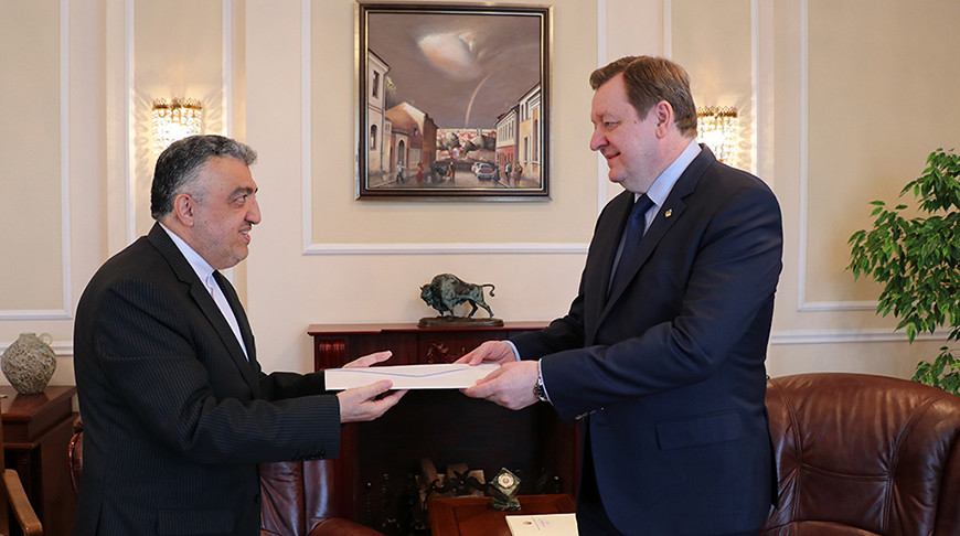 Министр иностранных дел Сергей Алейник провел встречу с Чрезвычайным и Полномочным Послом Ирана в Беларуси Алирезой Санеи, во время которой новый глава иранской дипмиссии вручил копии верительных грамот.